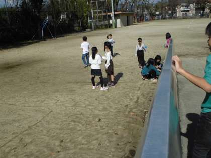 鏡を使って,光の進み方を調べています。これ以上ないほどの,絶好の理科日和です。
