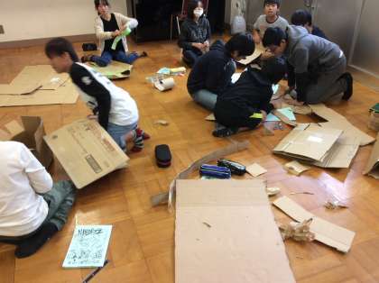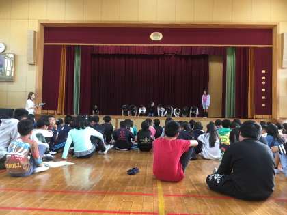まなびの集いに向けての練習が始まっています。今年は6年生になって初めて学んだ歴史について,みんなに知ってもらうために,おもしろ楽しく劇にします。演技をする人と小道具などを作る人に分かれて進めています。