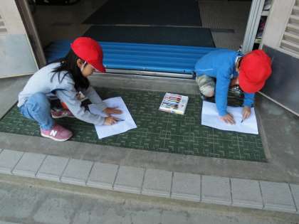 図工科の「うつしたかたちから」の学習で,紙をおいてクーピーでシャカシャカうつしだしました。