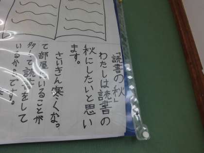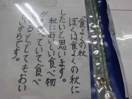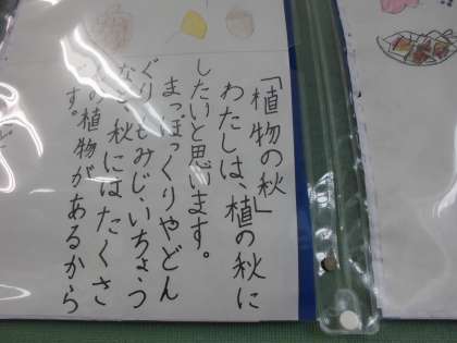 スポーツの秋,読書の秋,食よくの秋・・・何をするにもよい季節です。自分の秋を,文と絵に表しました。
