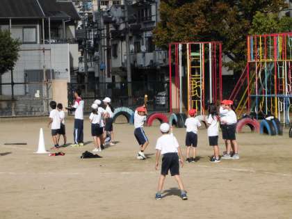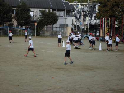 ゲームの進め方に慣れてきて,楽しみながら活動しています。攻め方,守り方も工夫が見られるようになってきました。