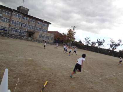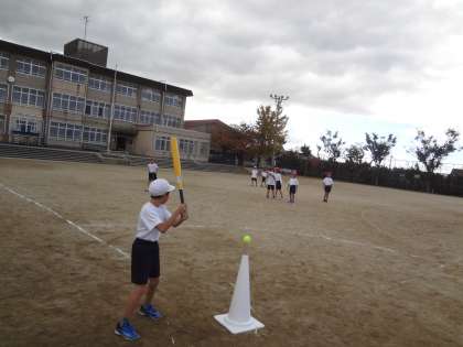 体育の学習はベースボールです。打つ・走る・受ける・投げるなどたくさんの要素があるスポーツです。ルールが分かってくると,みんな楽しんでいます。