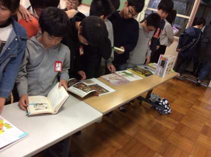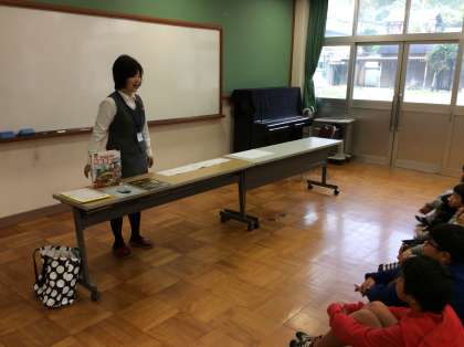 京都・伏見の歴史に関わる本について醍醐中央図書館の方に紹介しにきてくださいました。どの本も魅力的で,読み聞かせタイムでは子どもたちが絵本の世界に引き込まれていました。