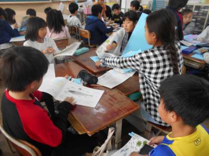 総合的な学習の時間の「魚っとおどろく魚博士になろう」では,自分たちが調べたことや体験したこと,中野先生に教わったことなどをまとめて発表の準備を進めています。