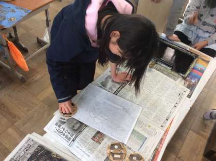 図工では,板を彫る作業も大詰めです。試し刷りをして,さらに彫り進めたり,細かい部分の修正をしたりしています。本番の紙に刷ったら後は色をつけて完成です。6年生らしい版画の作品になるように,最後まで丁寧に仕上げていきたいです。
