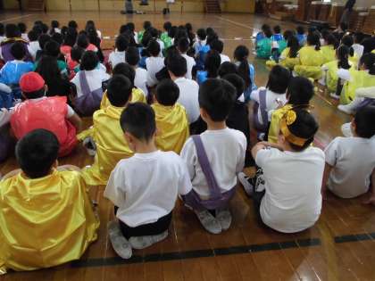 3年生が出演の時には,次の出番の4年生に,お客さんとして見てもらいました。そして,4年生の出番の時に,3年生はお客さんとして,「鑑賞」の練習をしました。