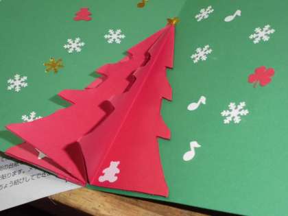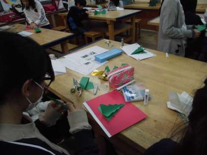 基本のツリーの部分を作ったら,あとは自分でいろいろ工夫します。ブーツ,トナカイ,プレゼント,雪の結晶・・・など,クリスマスらしいアイテムを次々作っていました。もの作りは楽しいですね。