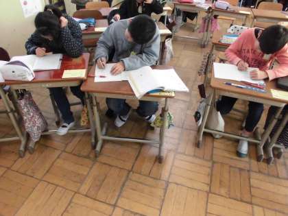 分子にかけたり,分母にかけたり,また分子を分母でわったり・・・。その日その日学んでいく課題によって,計算もちがってきます。課題ができるまで,最後までみんなよくがんばっています。