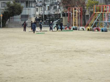 閉会式も終わり,今,使用した運動場をきれいに整備してくれました。最後まで,ありがとう。