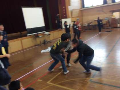 クラス写真を撮影していただいたあとは,楽しいゲームを用意していただきました。子どもたちは,久しぶりであろうしっぽ取りに熱くなっていました。