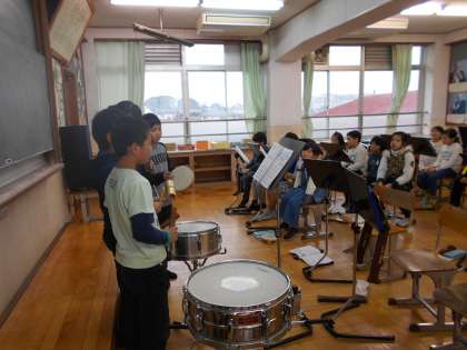 2回続けて鳴らすところは,焦ってついつい速くなりますが,練習をして少しずつ息を合わせて,班で演奏できるようになりました。