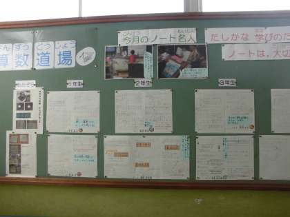 今月の算数ノート名人は,各学年1組・2組のノートが掲示されています。