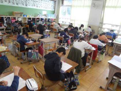 漢字と計算の日野検定をしました。合格目指してみんな一生懸命がんばっています。