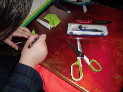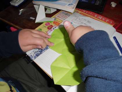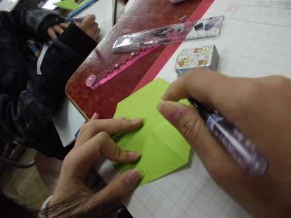 折り紙から作った図形をもとに,多角形の特徴について調べています。