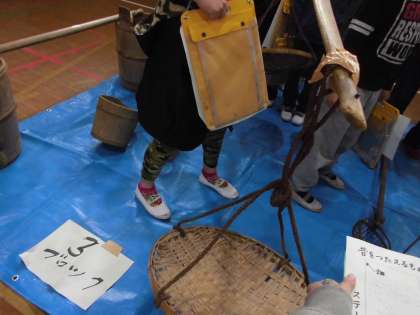 地域の老友会の方々に来ていただき,昔の道具の学習をしました。