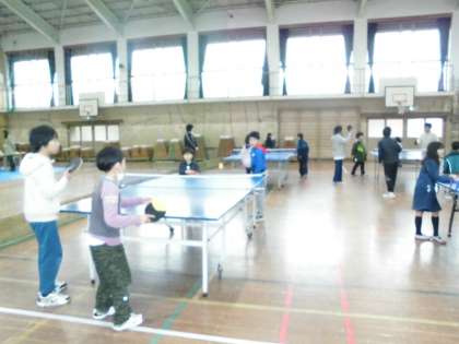 卓球は,学年ごとに分かれダブルスで対戦しています。さすが高学年!きれいなスマッシュを決めたり,変化球のサーブを打ったりしていました。