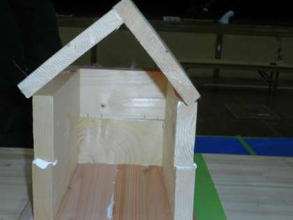 おやじの会のみなさんやPTAのみなさんにもお手伝いいただき,廃材を使って作りました。慣れないのこぎりや金づちの使い方も丁寧に教えていただき,かわいい作品を作ることができました。