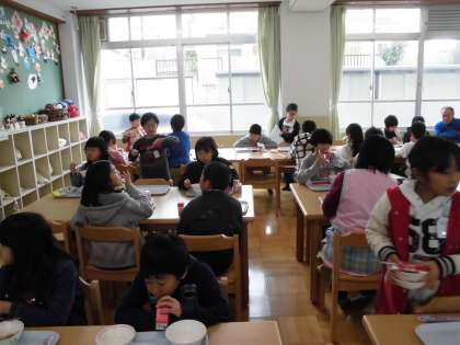 いつもとちがう教室は,いつもとちがう雰囲気も味のうちですね。みんなでおいしくいただきました。