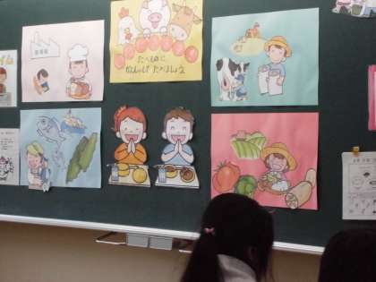中野先生と栄養の学習をした後,今日はランチルームで給食をいただきました。