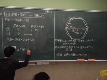今日は,円周と直径の関係について考えました。