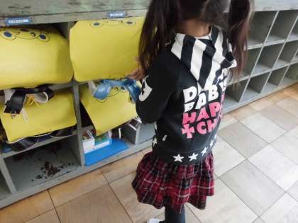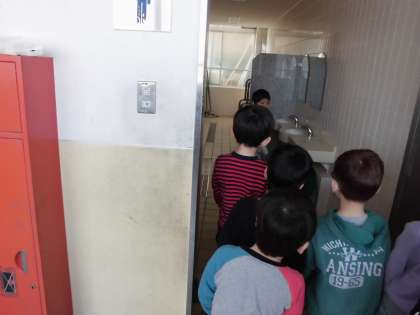 ランドセルの中の教科書のしまい方,連絡帳の出し方,トイレの使い方など,ひとつひとつお話を聞いて,友だちといっしょに進めていきました。
