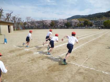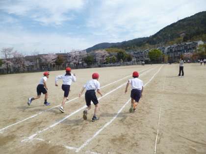 4年生になり,初めての50m走をしました。今日は2回タイムを計ることができました。力いっぱい走っていました。3年生の時よりタイムが速くなった子もいたようです。喜んでいる子もいました。