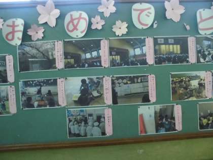 今回の掲示は,1年生の入学をお祝いして,「1年生の一日」です。毎日がどきどき,わくわくの1年生の学校生活を,写真とともに紹介しています。参観の際にご覧ください。