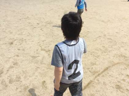 休み時間に鬼ごっこをしました。ビブスを着た鬼が元気いっぱい笑顔で追いかけていました。