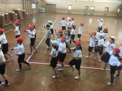 体ほぐしの運動の単元に取り組みました。「猛獣狩りへいこうよ。」や「まねっこダンシング」「協力立ち」などみんなで仲良く活動しました。「もっとしたい〜!」とみんな楽しそうな笑顔でした。