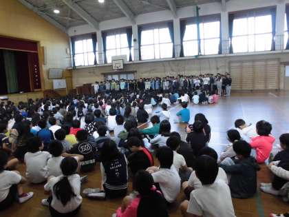 校長先生のお話の後,5年生が「日野人権宣言」を発表しました。