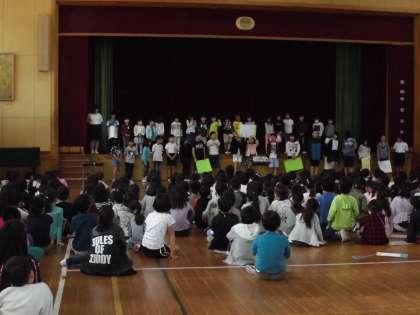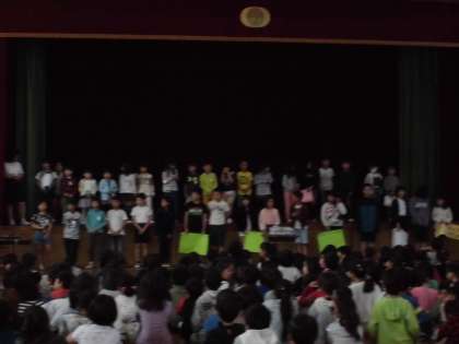 その後,各学級ごとに「あったか言葉」を発表しました。「ありがとう」「いっしょにやろう」「すごいね」「だいじょうぶ?」などのあったか言葉で,みんなの心があったかくなりますように・・・。