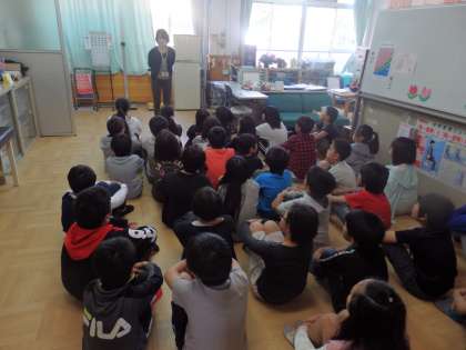 養護の先生から,目の守るために大切なことを教えてもらいました。姿勢を正すことで,目も守られます。