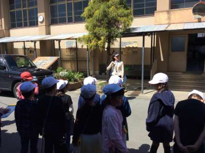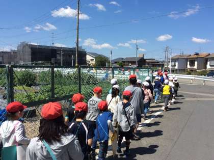 社会科の学習で自分たちの校区がどのような様子になっているのかを調べるためにまち探検に出かけました。天候もよく,子どもたちも元気よく出発しました。