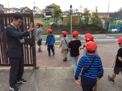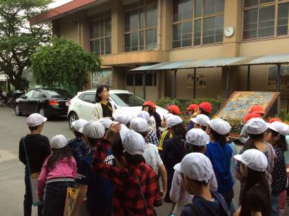前回北コースへ行ったチームは南コースへ,南コースへ行ったチームは北コースへ見学にい行きました。天気も良く元気に「行ってきまーす!」と出発しました。