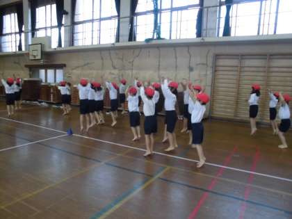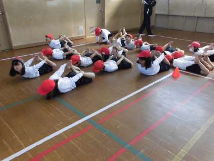 音楽に合わせて,いろいろな生きものの動きをしました。