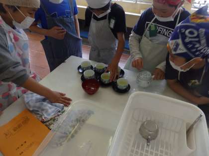 グループで協力しながら,お茶を入れました。初めての経験の児童も多く,試行錯誤しながら取り組んでいました。全クラス行ったので,全員お茶入れ名人になれた・・・かな?またお家で感想を聞いてみてください♪