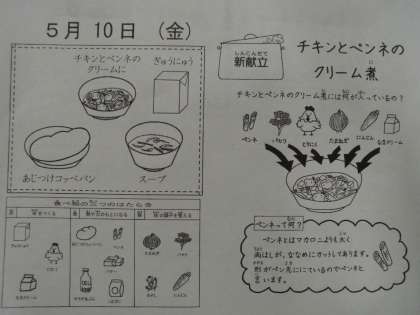 今日の給食は,あじつけコッペパン・スープ・チキンとペンネのクリーム煮・牛乳でした。新献立のチキンとペンネのクリーム煮は,スチームコンベクションを使ってふんわりと調理されていました。