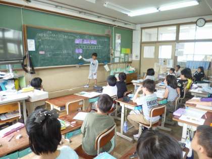 どのようにして分けていくとよいのか図を使って考えました。「余った10の束の色紙はバラにしたらいいのか!」と分かるとスッキリした表情を見せていました。