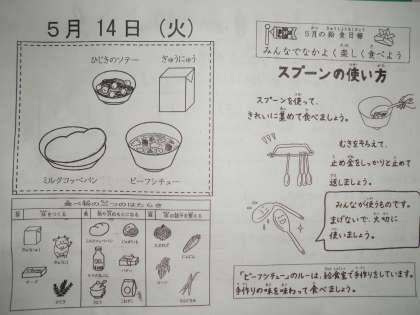 給食カレンダーでは,スプーンの使い方について紹介しています。