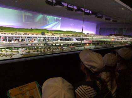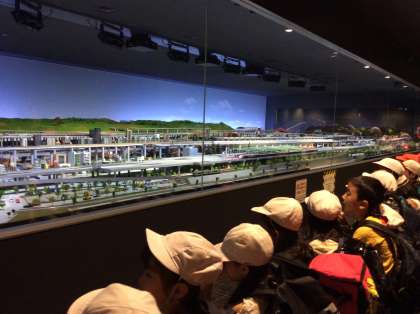 全員で鉄道ジオラマショーを鑑賞しました。照明が暗くなったり,鉄道がスクリーンに映し出されたり…そのたびにみんなは歓声をあげて楽しんでいました。