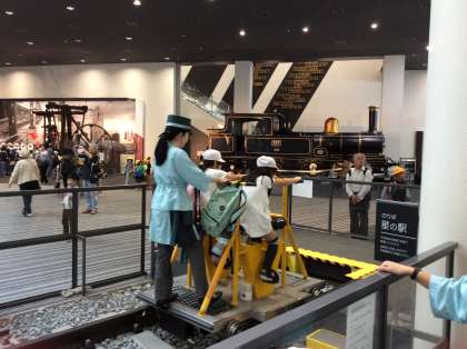 残りの時間で館内見学の続きをしました。昔の様子が再現されたブースなどを巡りながらクイズラリーに取り組みました。ヒントを参考にしながら班で頭を悩ませながら解いていました。途中,軌道自転車を体験している子たちもいました。