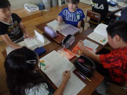 国語では生き物は円柱形という説明文を学習しています。今日は段落毎に整理しました。次の時間は,筆者の考えに迫っていきます。