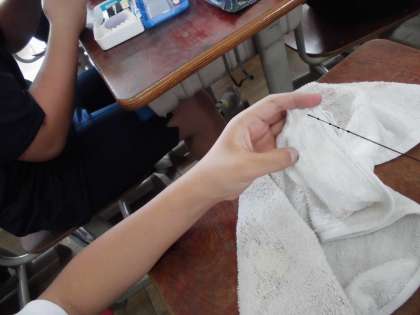 前回の「玉結び」に加えて,今日は「玉止め」の練習です。