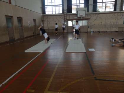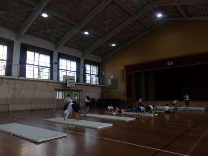 マット運動の練習もいよいよ終盤になっています。できるようになってきた技も増えてきました。授業の間止まることなく練習をしていました。来週テストです。練習の成果を出したいものですね♪