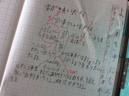 国語科ではよい聞き手になるために話合い活動をしています。今日は自分のどんな話をしたいのかを考えました。習い事の話や自分がうれしかった話などみんな早く話したい様子でした。
