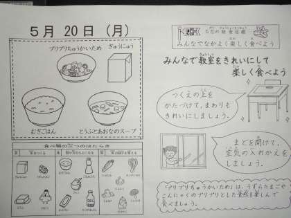気持ち良い環境の中で,おいしい給食が食べられるよう心掛けてください。