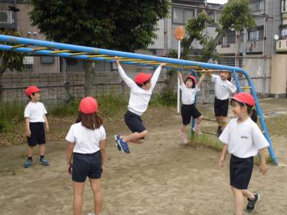 うんていも上手になり,手が痛くなりながらも一生懸命練習していました。