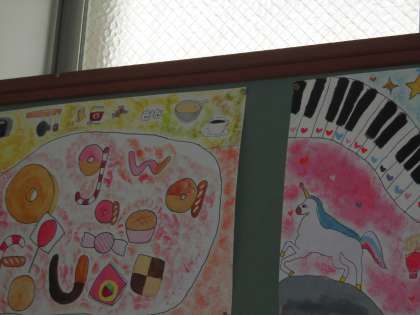 自分の想像した世界を,にじみやぼかし,ドロッピングやたんぽなど,絵の具を使ったいろいろな技法で表しました。