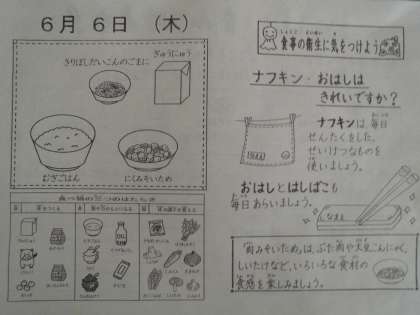 給食カレンダーでは,食事時の衛生について紹介しています。