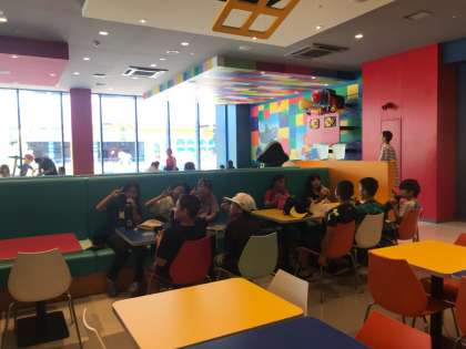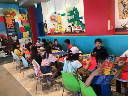 レゴの中のレストランでお昼ご飯を食べています。エネルギーを補給して、また出発します!!